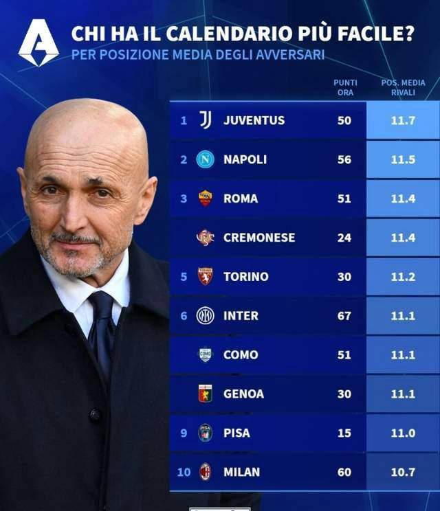 3 - 德转揭晓意甲后十轮对阵强度:尤文赛程最轻松,那不勒斯与罗马紧随其后
